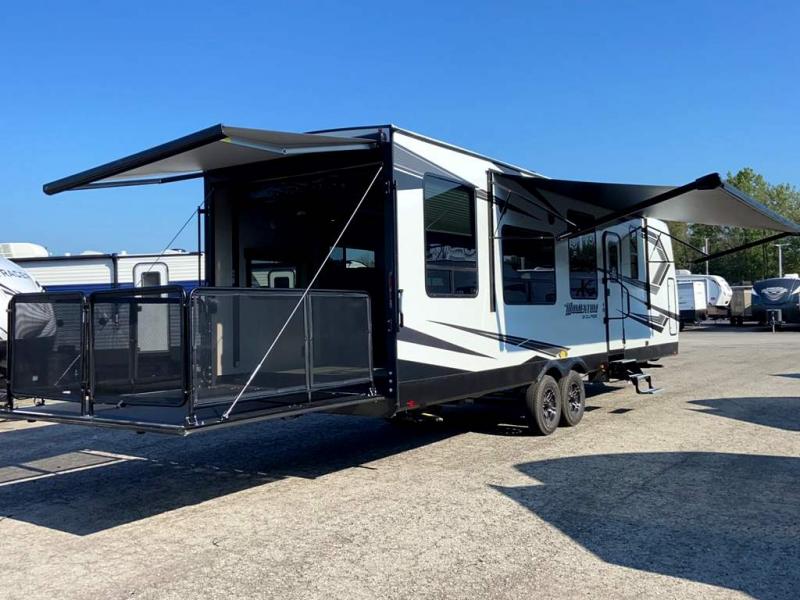 toy hauler with side patio deck for sale